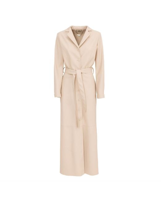 Women's Natural Neutrals Long Button-Up Eco-Leather Trench Ecru