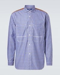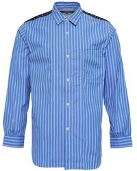 Junya Watanabe Men's Blue Cotton Stripe-Check Shirt