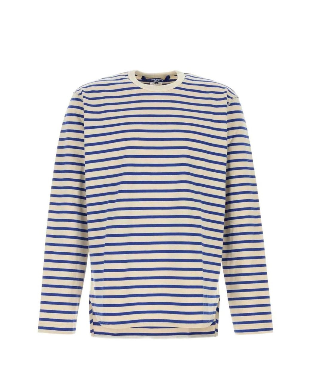 Light beige/blue cotton striped crew neck long sleeves Size: M. Gender: Male. Material:Cotton. Colour: blue