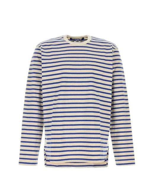Cotton Knit Oversize T Shirt Stripes - Blue