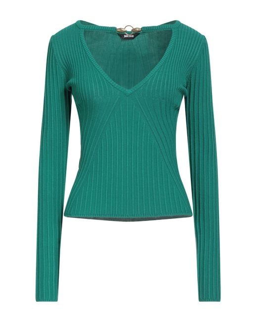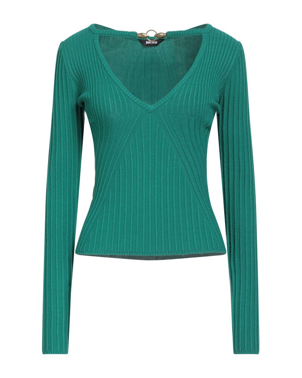 JUST CAVALLI. ribbed-knit, lightweight knit, cutout, brand logo, embellished, plain colour, v-neck, long sleeves, hand wash or dry clean, do not bleach, do not tumble dry. 72% Viscose, 28% Polyester.