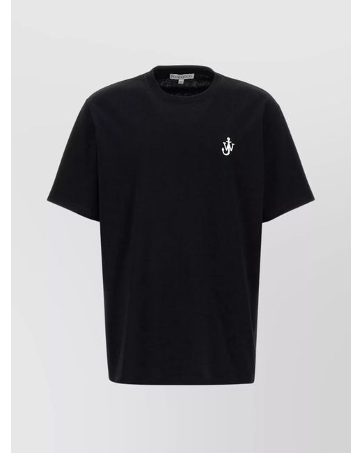 Men's Black 'Embroidered Anchor' Crew Neck T-Shirt