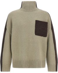 Go to BaltiniJ. W. Anderson offers a knitted half zip jumper made from an organic cotton and recycled polyester blend, featuring a stylish striped pattern. The high neck is complemented by an acetate puller, and