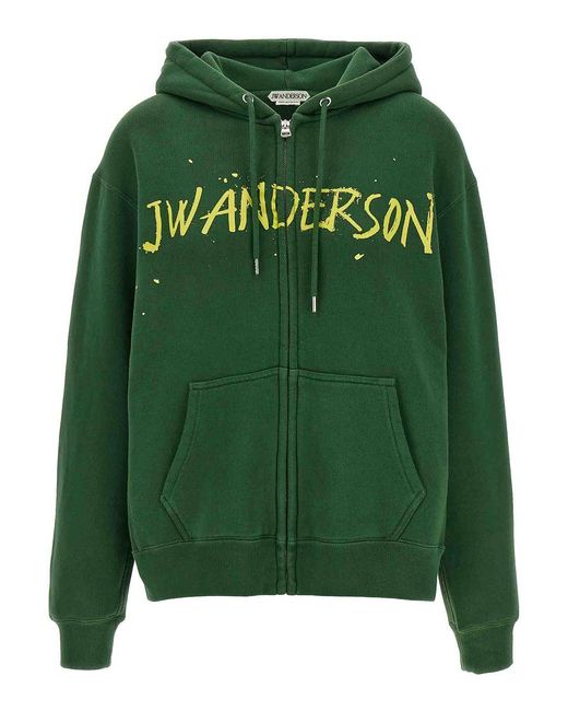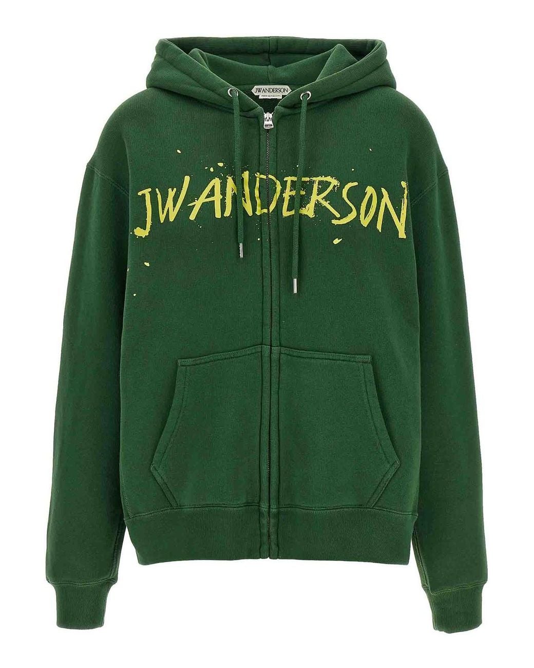 Brushed cotton hoodie with front print and zip closure, pockets, long cuffed sleeves and dropped shoulders. Colour: green