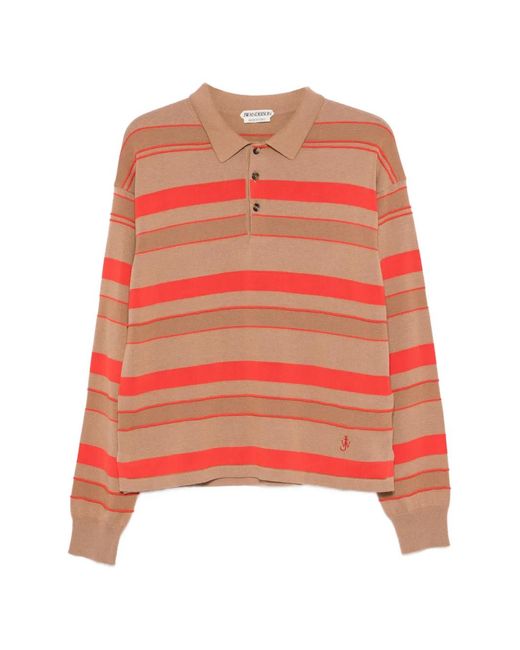 Beige horizontal stripes button fastening polo collar logo embroidery long sleeves Size: S. Gender: Male. Material:Cotton/Viscose/Wool. Colour: multicolour