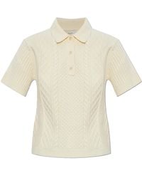 Go to VITKACCOLLARED TOP by JW ANDERSON is a piece where refined aesthetics merge with a subtle, unexpected charm. The dominant, deep blue shade accentuates understated elegance, while the classic, slightly boxy cut is complemented by short sleeves