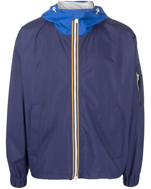 Men's Blue Drawstring-Hood Zip-Up Jacket