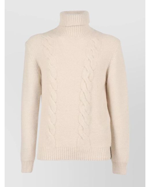 Men's Natural Textured Turtleneck Cable Knit Jumper
