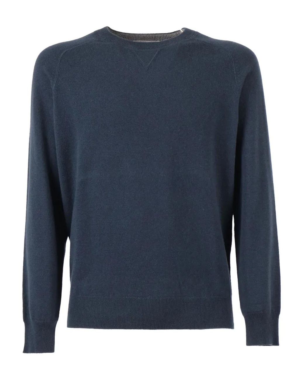 Dark blue crew neck triangle detail long sleeves ribbed hem ribbed cuffs Size: 52. Gender: Male. Material:Cashmere. Colour: blue