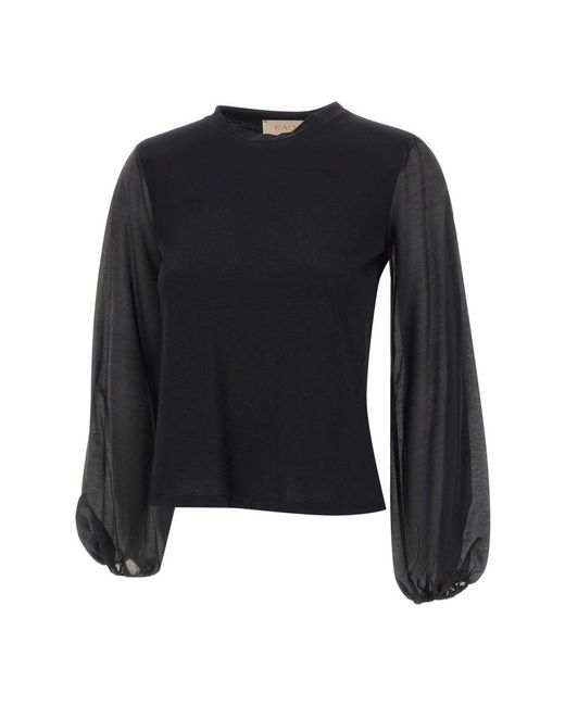 Kaos Cotton Blouse highlights long balloon sleeves with contrasting lyocell blend fabric and elastic cuffs for a refined everyday look. Made in Italy, the crew-neck blouse pairs cotton comfort with a regular silhouette. Key attributes: Black | Cotton | Elastic cuffs | Crew neck | Long balloon sleeves | Contrasting lyocell blend fabric | Dimensions & fit: Regular fit | Composition & care: Cotton | Lyocell blend Colour: black