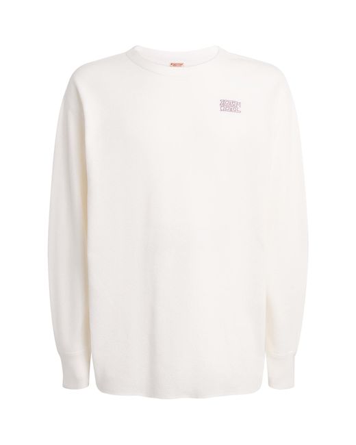 Men's White Cotton Waffle-Knit Embroidered T-Shirt