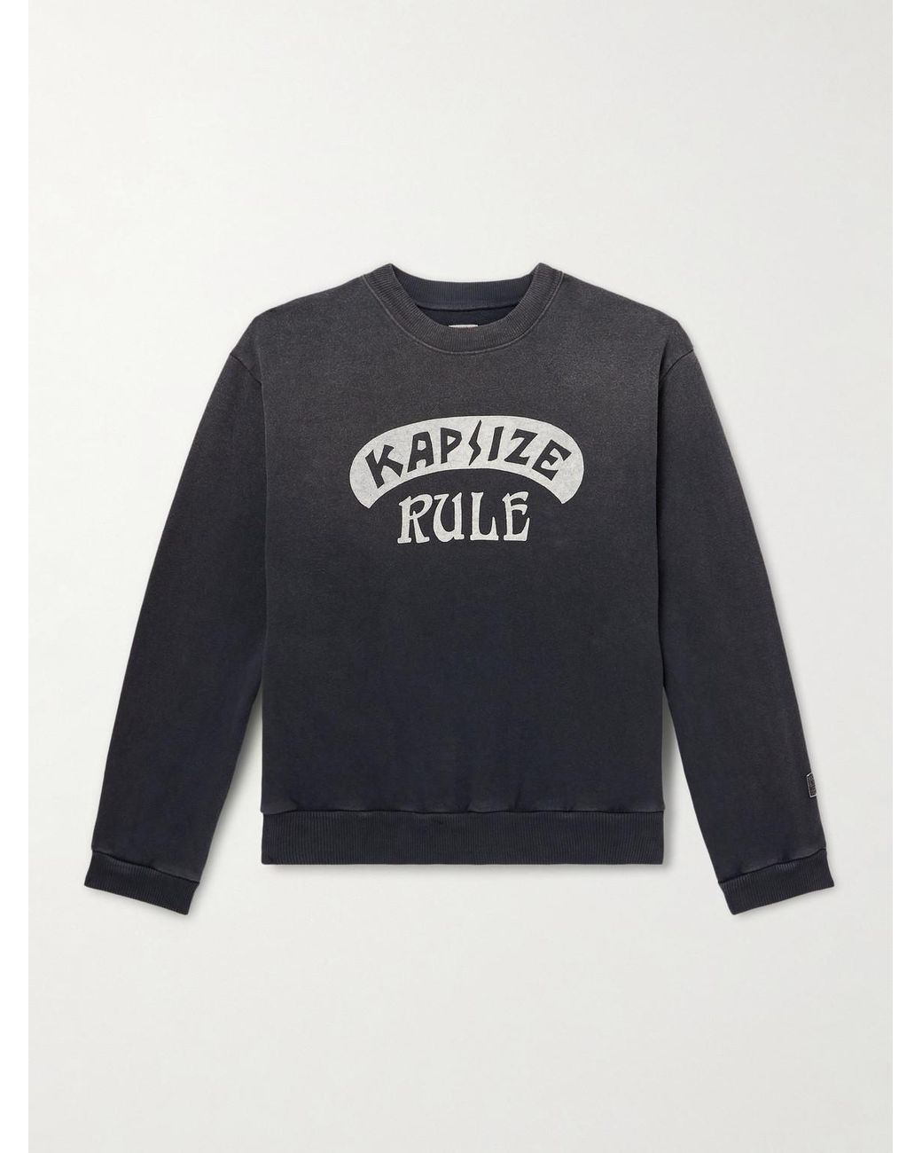 KAPITAL's sweatshirt is printed with 'KAPSIZE RULE' typography from the brand's AW25 drop. It's been made in Japan from faded cotton-jersey and has the label's patch stitched to one cuff. The baggy fit adds to its laid-back character. Colour: blue
