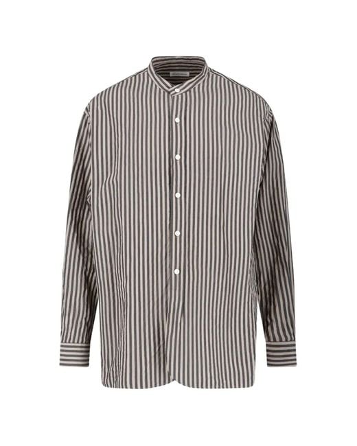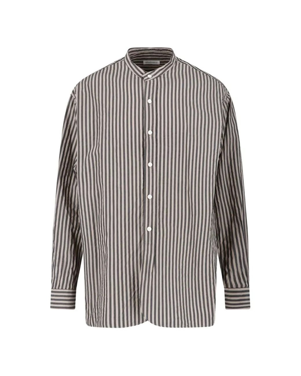 Men's Grey Bumpy Striped Band-Collar Shirt