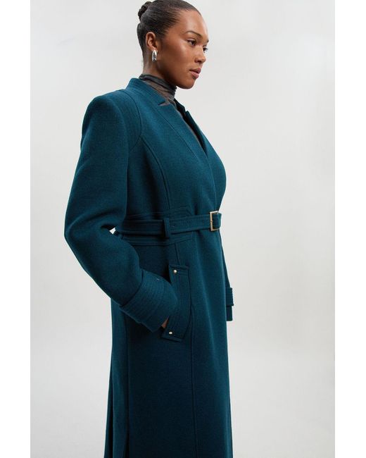 Women's Blue Plus Size Wool Investment Notch Neck Belted Detail Tailored Maxi Coat