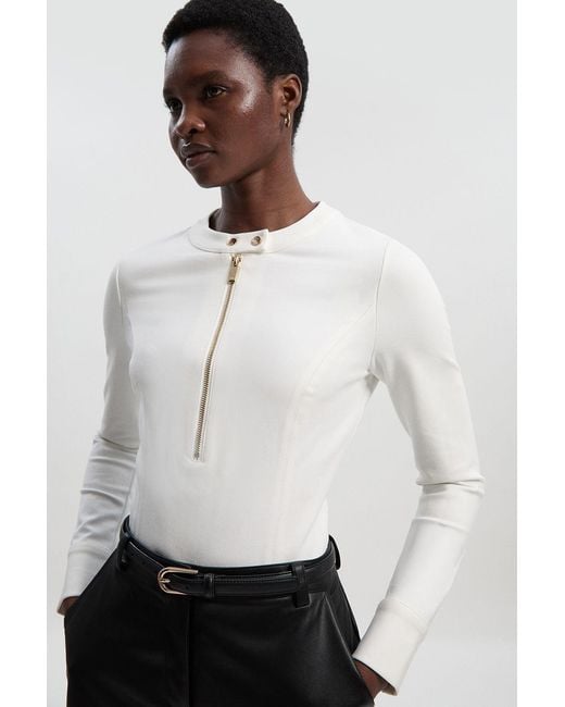- Ponte Zip Trim Detail Long Sleeve Bodysuit