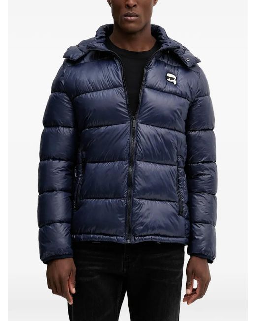 Men's Blue Hooded Logo-Patch Padded Jacket