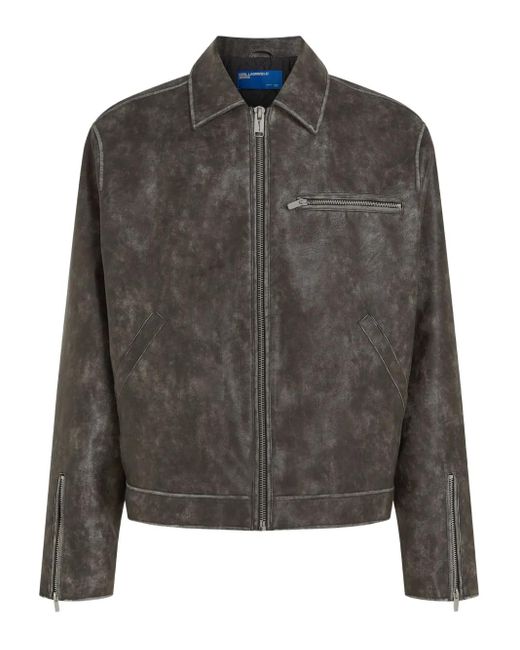 Men's Grey Washed-Effect Zip-Front Jacket