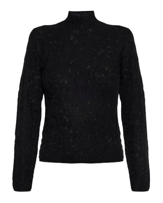 Lace Knit Turtleneck Top - Black