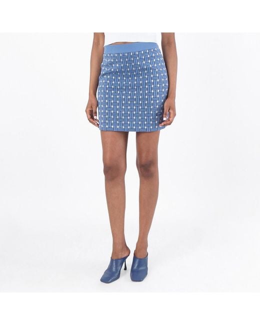Kenzo Ladies Bottoms. Fashion category: Skirts. SKU: FF52JU4733CO-64. Color: Sky Blue. Kenzo Elastic Waistband Mini Skirt. This skirt features a light blue elastic waistband with an embroidered logo detail for a subtle touch of branding.60% Cotton, 17% Rayon, 16% Viscose, 7% Polyester. Colour: blue