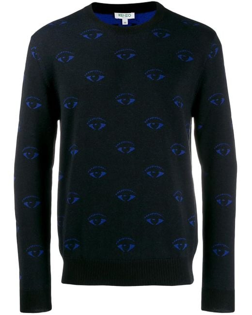 Kenzo embodies Parisian-cool with sharp silhouettes and a punchy colour palette. This black wool blend eye pattern jumper features a ribbed round neck, a relaxed fit, a ribbed hem, long sleeves and ribbed cuffs. Size: XXL. Gender: Male. Material:Wool/Cotton. Colour: blue