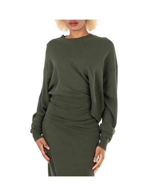 Women's Green Ladies Dark Khaki Asymmetric Hem Knit Jumper