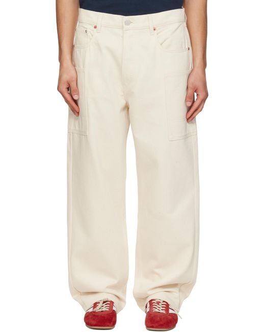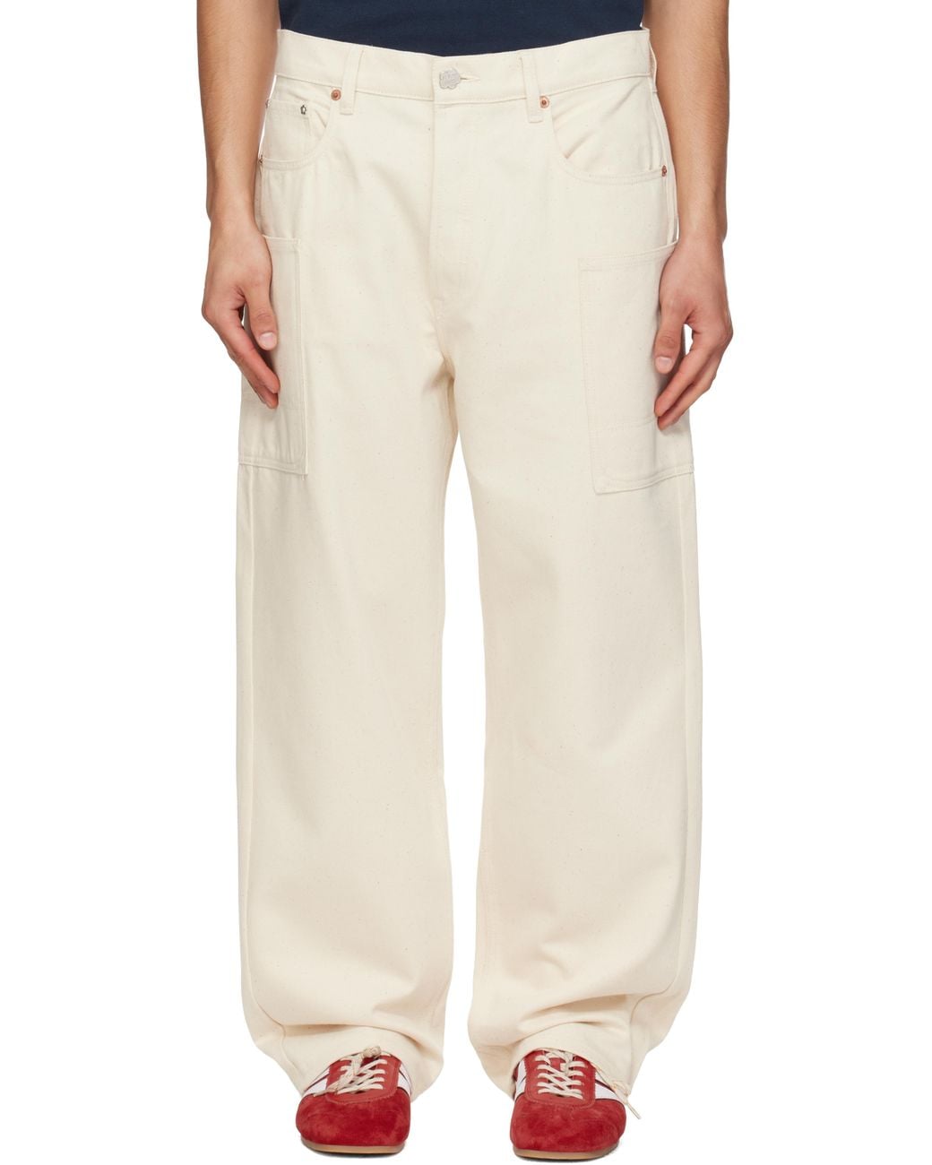 Non-stretch denim jeans. · Straight-leg · Belt loops · Five-pocket styling · Button fly · Patch pocket at outseams · Hair-on leather logo patch at back waistband Supplier color: Raw White Denim Colour: natural