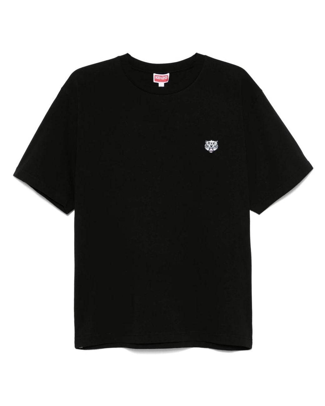 Elevate your casual style with this Kenzo Happy Tiger Embroidered Classic T-shirt for men. Colour: black