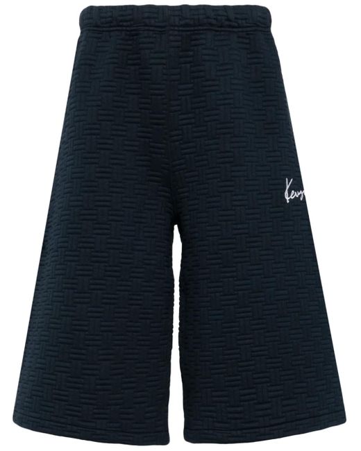 Midnight blue patterned jacquard embroidered logo at the leg mid-rise elasticated waistband with internal drawstring wide leg two side slit pockets rear patch pocket knee-length Size: S. Gender: Male. Material:Polyester/Cotton/Elastane. Colour: blue