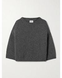 Go to NET-A-PORTERSlight tweaks to the classic shape make KHAITE's 'Sabina' jumper feel distinct. Designed with dropped, slightly snug shoulders, it's made from soft, insulating cashmere and has ribbed trims outlining the crewneck and abbreviated sleeves. Colour: blue