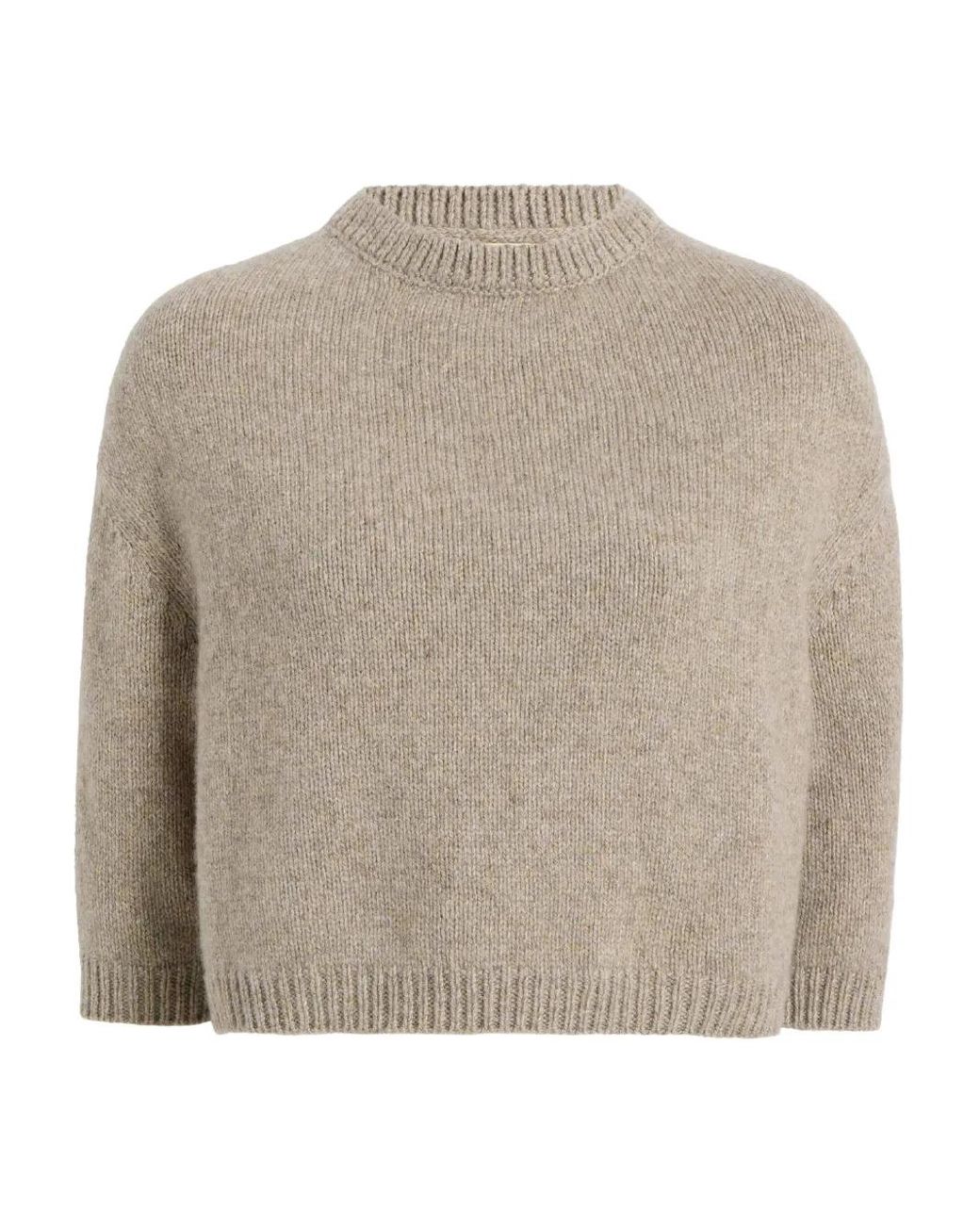 Beige cashmere ribbed trims three-quarter sleeves crew neck Size: M. Gender: Female. Material:Cashmere. Colour: grey