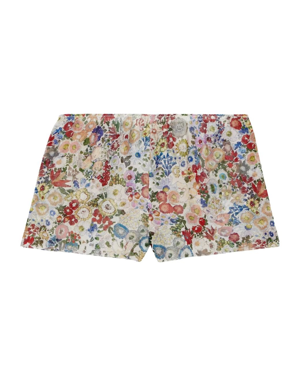 Featuring an ultra-short design, made from silk chiffon fabric printed with colourful floral patterns, and equipped with an elastic waistband. Colour: multicolour