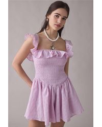 Go to Urban OutfittersThe prettiest romper from Kimchi Blue. Crafted from a lightweight rayon fabric with Swiss dot detailing. Complete with a scoop neckline, short sleeves, an elasticated waist and floaty hem with shorts underneath. Exclusive to Urban Outfitters. Colour: black