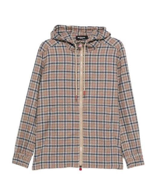 Men's Brown Check-Pattern Hoodie