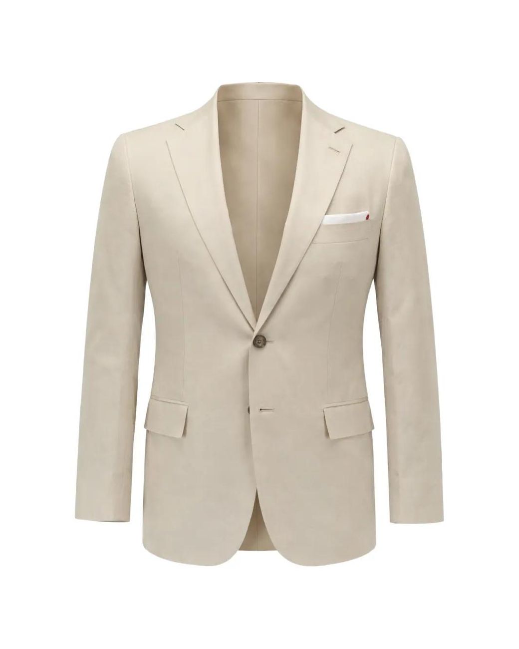 Beige notched lapels front button fastening front flap pockets belt loops Size: 42. Gender: Male. Material:Cotton. Colour: white