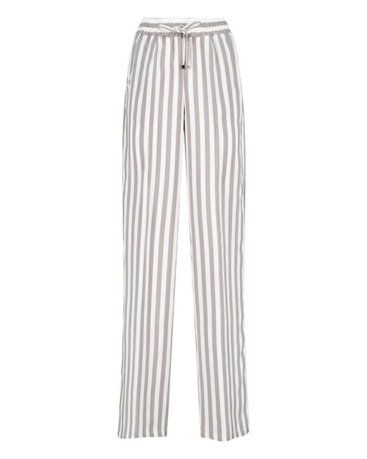 - Wide silk trousers Kiton beige - White striped pattern - Mid-rise elastic waistband - Drawstring at the waist - Two side pockets - Two back pockets - Straight leg Colour: white