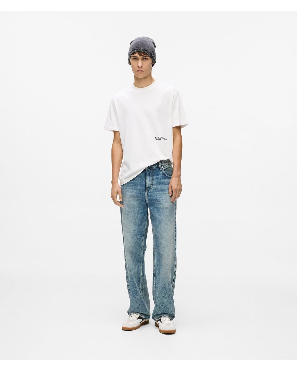 A Karl Lagerfeld Jeans Relaxed Men’s Jeans In A Tinted Washed Blue Finish, Designed For Effortless Streetwear Appeal. These Jeans Feature A Laidback Silhouette With A Loose Fit That Enhances Comfort And Ease Of Movement. Crafted From A Blend Of 80% Cotton And 20% Recycled Cotton, They Combine Durability With A Soft Handfeel, Making Them Ideal For Casual, Everyday Wear. Subtle Design Details Include A Branded Shank Button At The Fly Closure And A Karl Lagerfeld Jeans Leather Patch At The Back Waistband, Adding A Touch Of Signature Style. A Distinctive Blue K-initial Embroidery At The Back Right Pocket Corner Completes The Look. Perfect For Pairing With Roomy Hoodies And Tees, These Jeans Amplify An Oversized Aesthetic While Maintaining A Grounded, Fashion-forward Edge. Details Relaxed Fit For Carefree Styling Branded Shank Button Closure Leather Logo Patch At Back Waistband Blue K-initial Embroidery Detail Casual Streetwear Silhouette Ideal For Layering With Oversized Tops Material: 80% Cotton, 20% Recycled Cotton Color: Tinted Washed Blue Features: Relaxed Fit, Branded Button, Leather Patch, Embroidery Colour: Blue Material: 80% Cotton, 20% Recycled Cotton. Laidback Silhouette For Carefree Styling, Branded Shank Button At The Fly Closure, Karl Lagerfeld Jeans Leather Patch At The Back Waistband, Blue K-initial Embroidery At The Back Right Pocket Corner