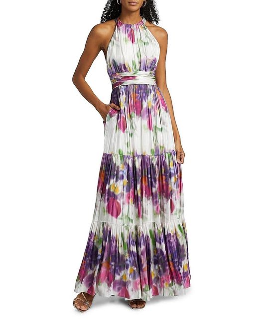 Women's Purple Nava Floral Metallic-Satin Halterneck Maxi Dress