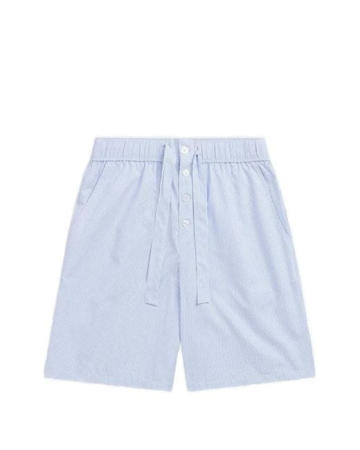Blue vertical-stripe pattern elasticated waistband drawstring fastening button-fastening fly two side slit pockets Size: M. Gender: Male. Material:Cotton/Polyester. Colour: blue