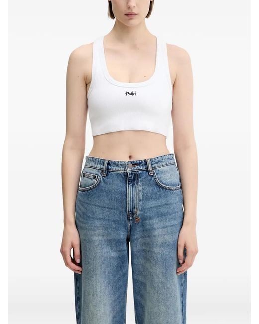 Logo-Tape Cropped Top - White