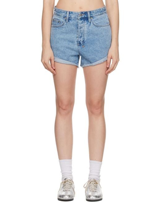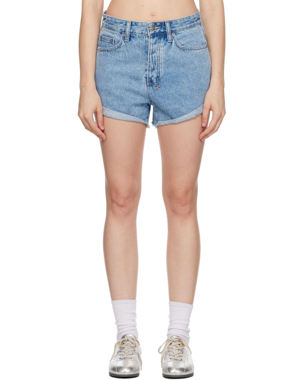 Non-stretch denim shorts. · Fading and subtle distressing throughout · Loose-fit · Mid-rise · Belt loops · Five-pocket styling · Button fly · Rolled cuffs · Logos embroidered at back · Logo-engraved antiqued silver-tone hardware · Contrast stitching in beige Supplier color: Denim Colour: blue
