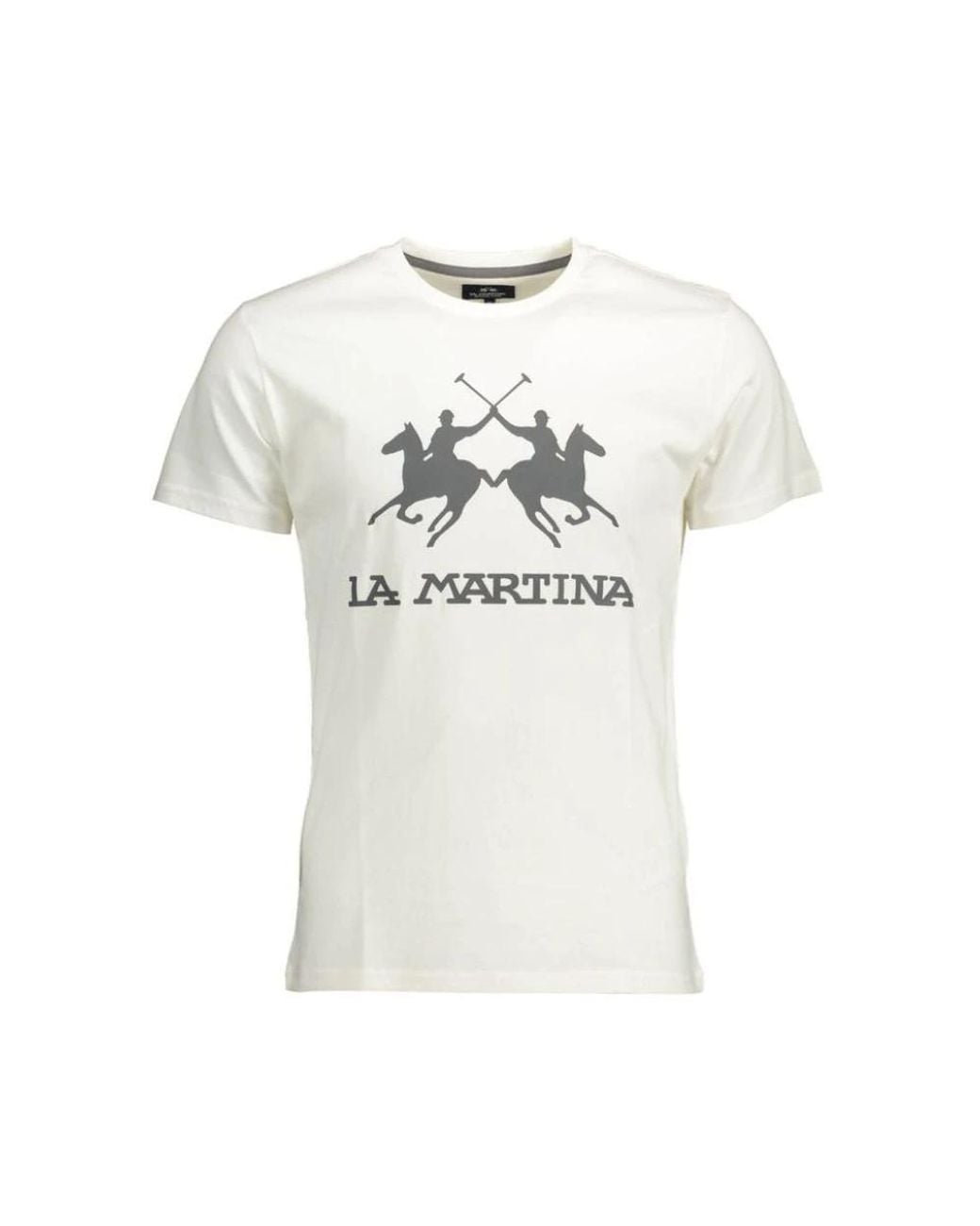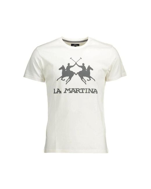 Elevate your wardrobe with this classic White Cotton T-Shirt from La Martina. Featuring a print design and logo for a touch of luxury, this short sleeve tee with a crew neck is a must-have for men. Colour: white