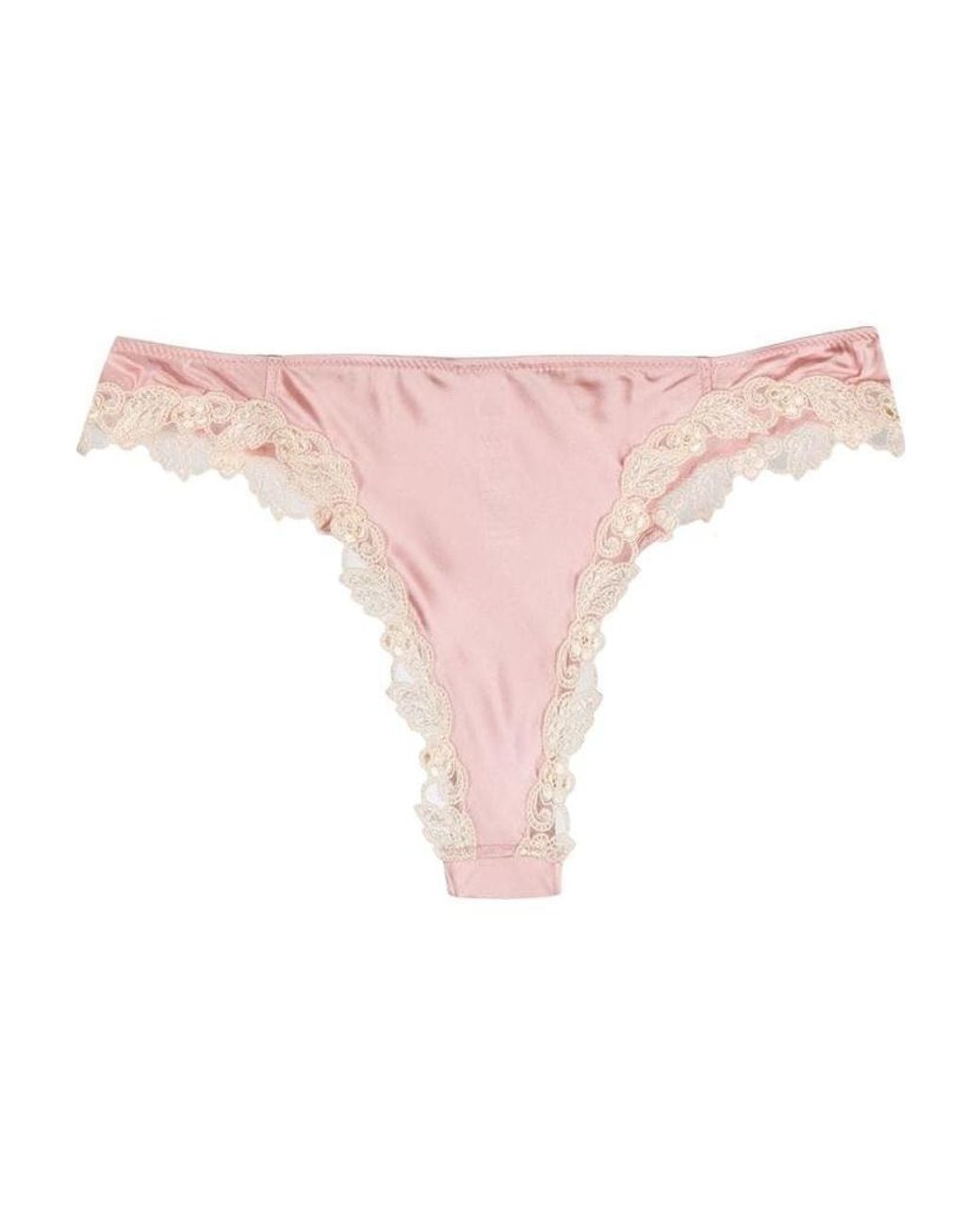 Pink flower hem embroidered thong underwear, elastic belt. Colour: pink