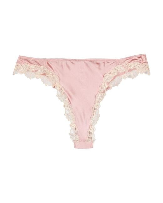 Camille Stretch-Silk Satin-Trimmed Organic Cotton-Blend Lace Briefs - Pink