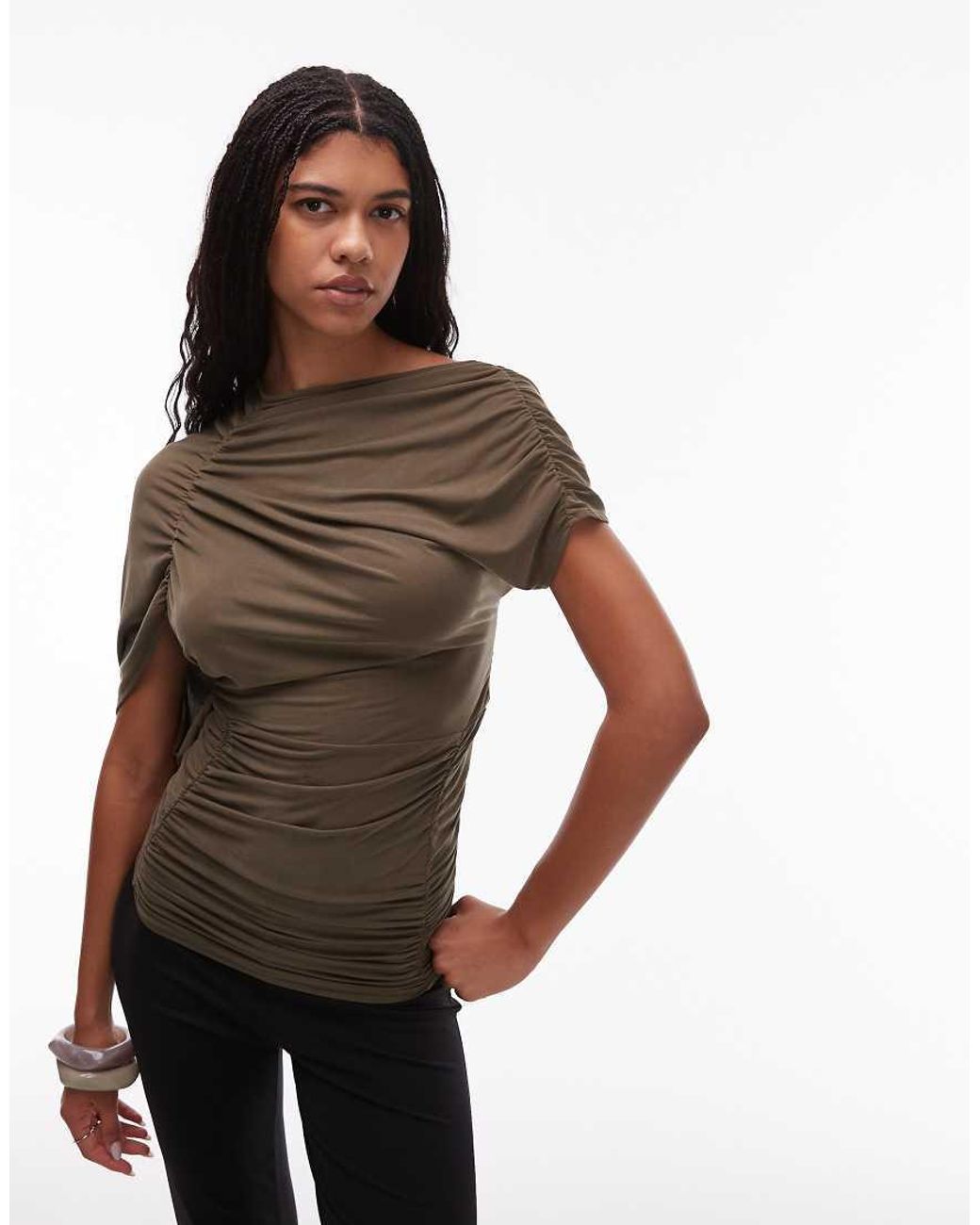 Tops by Laagam Plain design Draped neck Short sleeves Slim fit Colour: brown