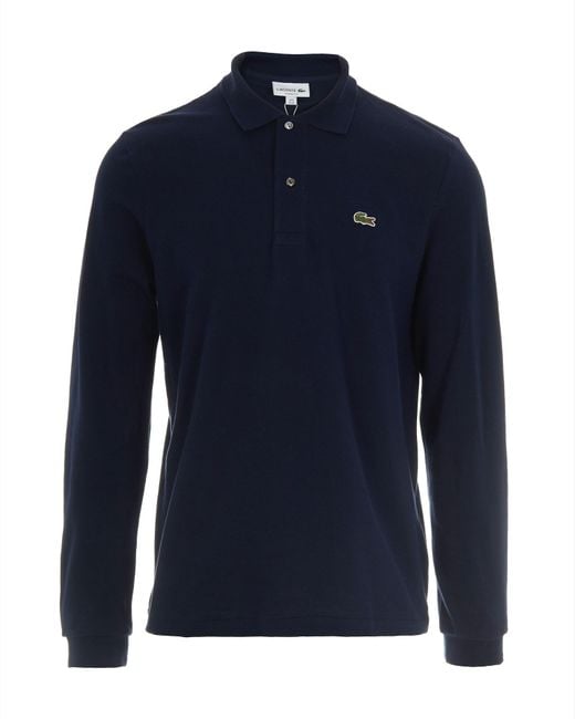 Polo a maniche lunghe in piquè di cotone dal taglio classico con collo a due bottoni madreperla e bordi a costine su collo e maniche.