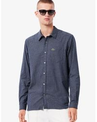 Go to Love The SalesMens Lacoste Regular Fit Plaid Poplin Shirt This elegant shirt is made from soft high-quality poplin with premium finish details. Featuring a buttoned collar breast pocket and mother-of-pearl buttons for a chic look.