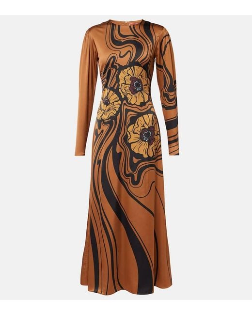 Women's Brown Clingy Swing Floral Satin Maxi Dress