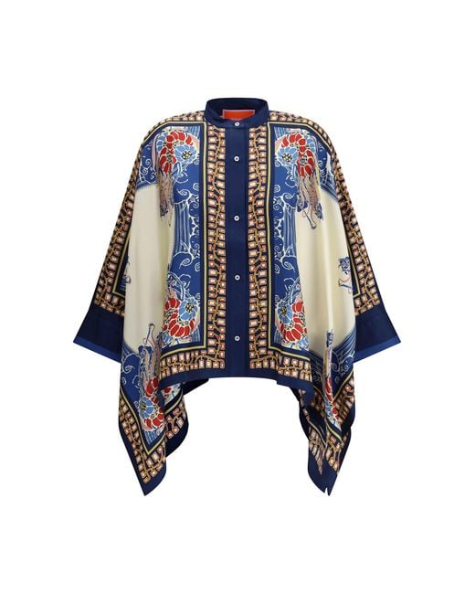 Women's Blue Multicolour Silk Pattern Shirt