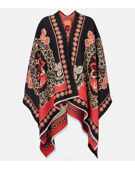 Soul Frayed Wool And Silk-Blend Jacquard Poncho - Red