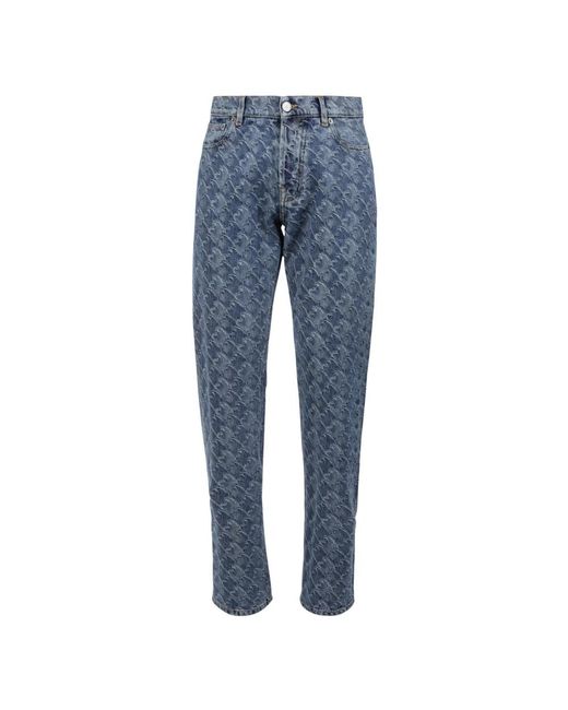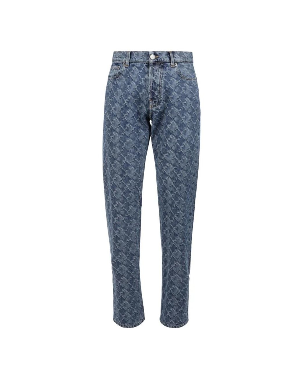 Lanvin Lunar Year Jacquard Denim Trousers — straight-leg jeans featuring an all-over jacquard motif for elevated everyday wear. Ideal for casual and smart-casual looks, they combine classic five-pocket styling with a concealed zip and button closure. Key attributes: Blue | Cotton | Five-pocket design | Button and concealed zip fastening | Jacquard all-over pattern | Straight leg | Dimensions & fit: Straight leg | Composition & care: 100% cotton | Machine wash cold, gentle cycle. Hang to dry. Iron on low if needed. Follow the garment care label. Colour: blue